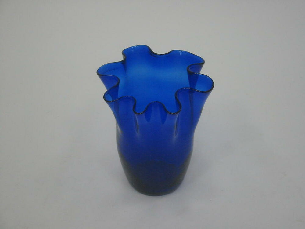 Vase, Glas, bauchige Form, blumenförmige gewellte Öffnung