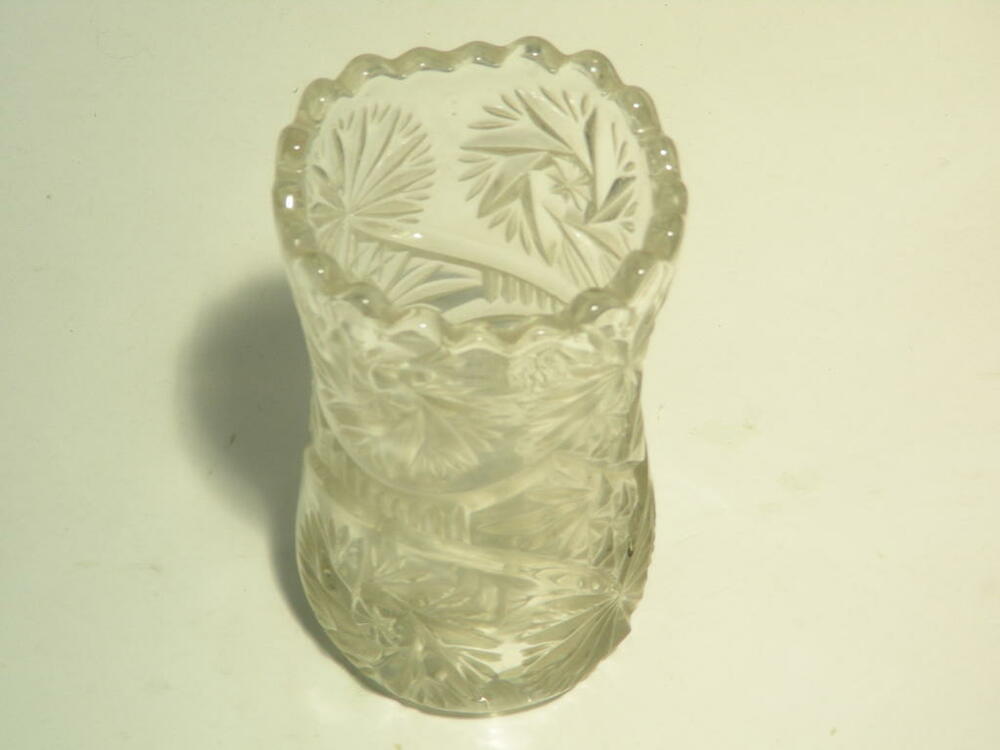 Vase, graviertes florales Muster, Wellenrand, leicht tailliert