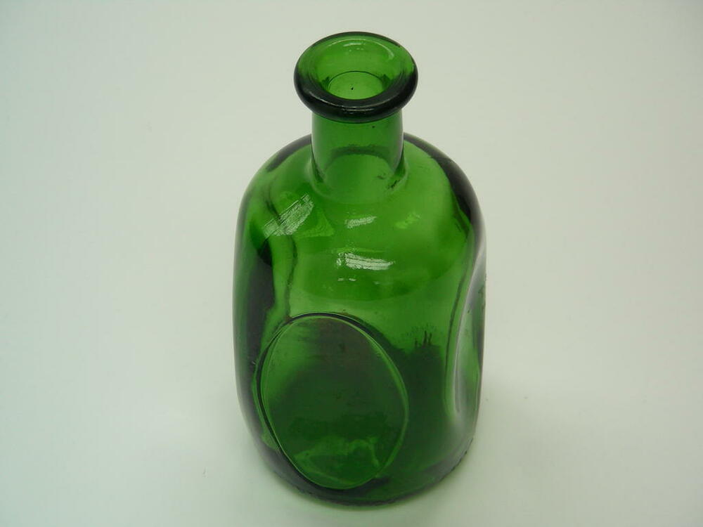 Vase, Flaschenform, eingedrückte Seiten, Buntglas