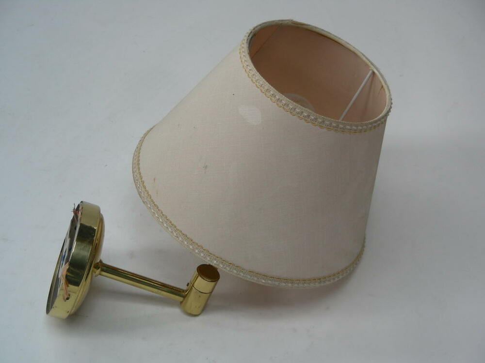 Wandleuchte, drehbar, Messingarm, Stoffschirm, Borte