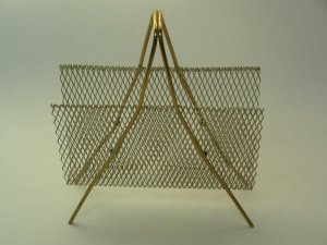 Zeitungsständer, Drahgeflecht, Messingfüße