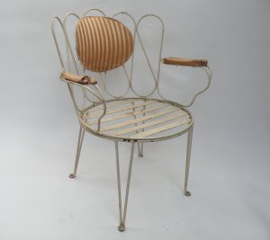 Stuhl, Gartenstuhl, Metall, mit Armlehne, graziles Stahlrohr, florales Dekor, Sitzflächenpolster fehlt, passend zu M_st_0040
