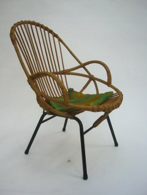 Stuhl, Korbsessel, Rattan-Sessel, Stahlgestell, lackiert, mit Sitzkissen