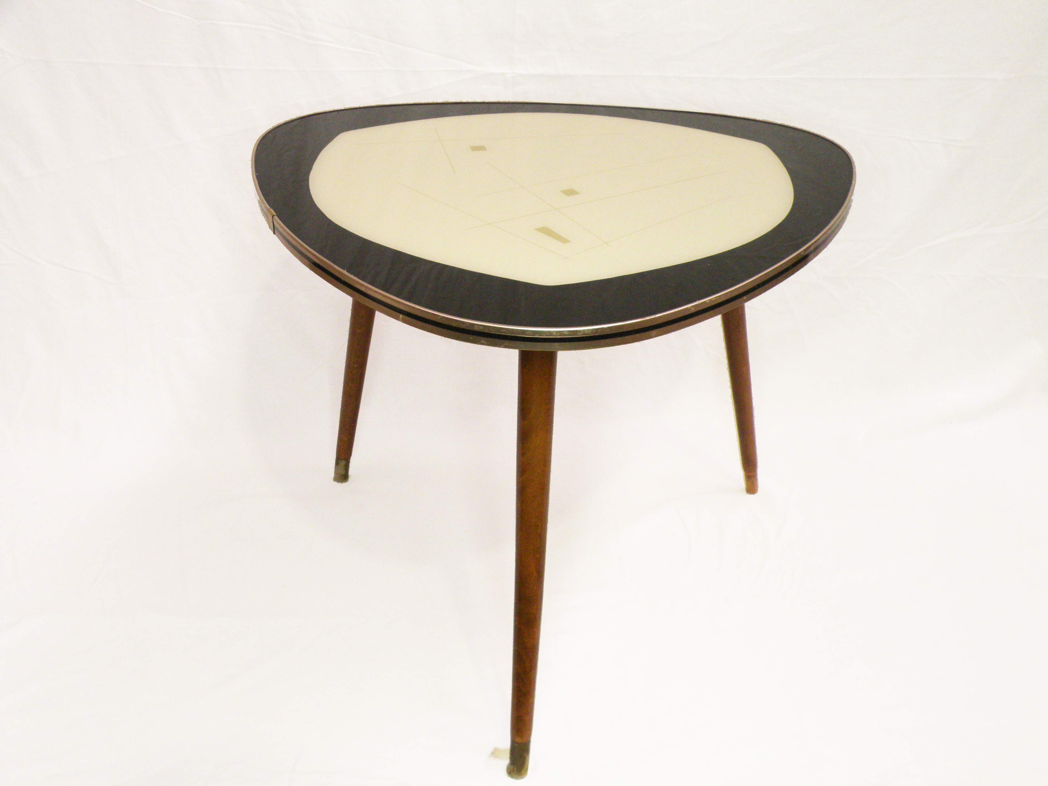 Couchtisch, Nierentisch, Cocktailtisch, 50-er, Einlage mit grafischem Muster