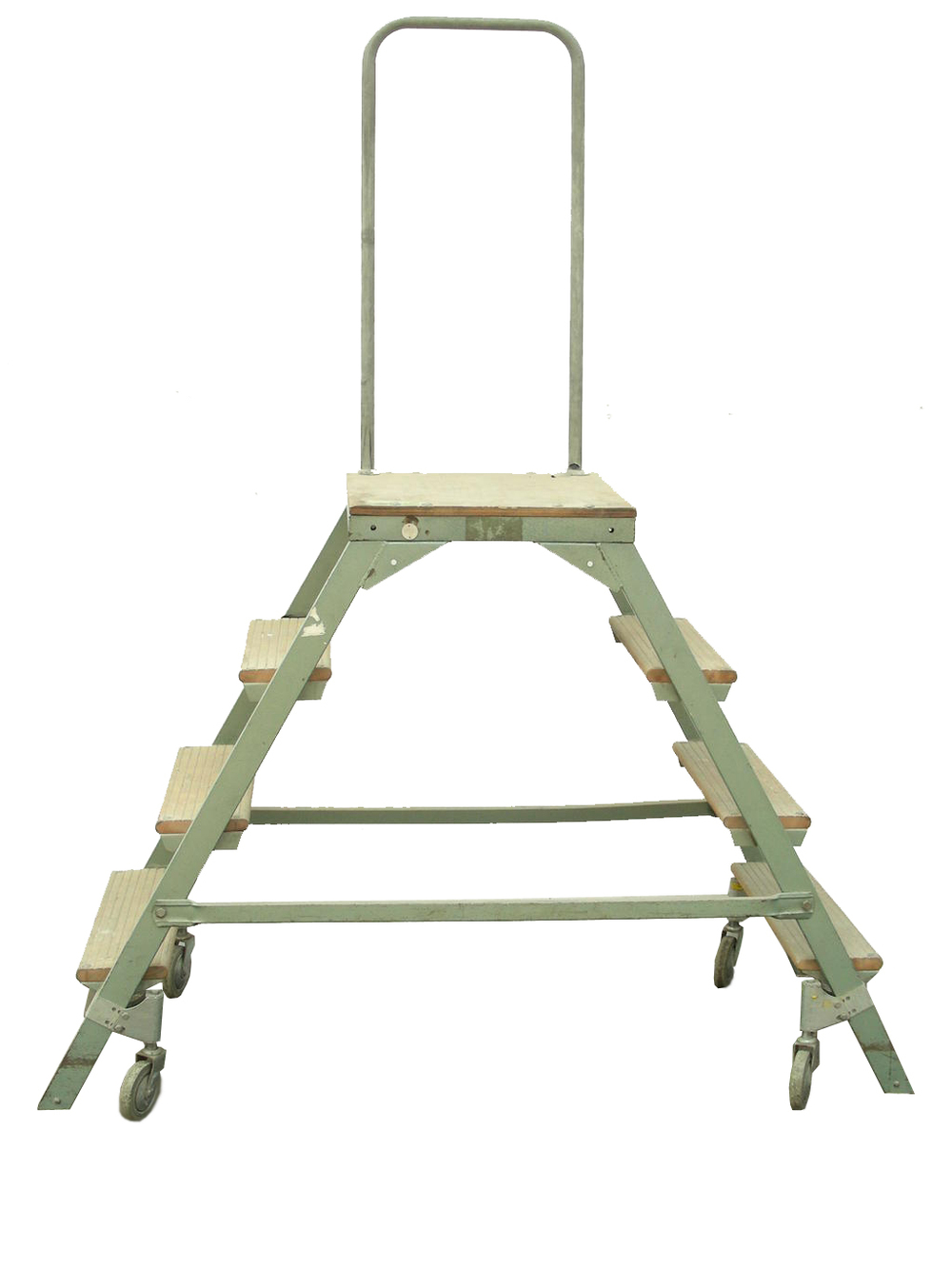 4 - stufig, beidseitig, rollbar, Metall, Holztritte