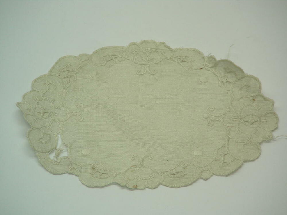 Deckchen, oval, florale Stickerei, Leinen