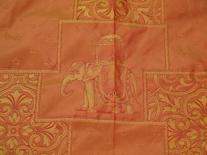 Vorhangschal, Schlaufen, eingewebtes, orientalisches Muster, schillernde Oberfläche, Satin, "Leitl"