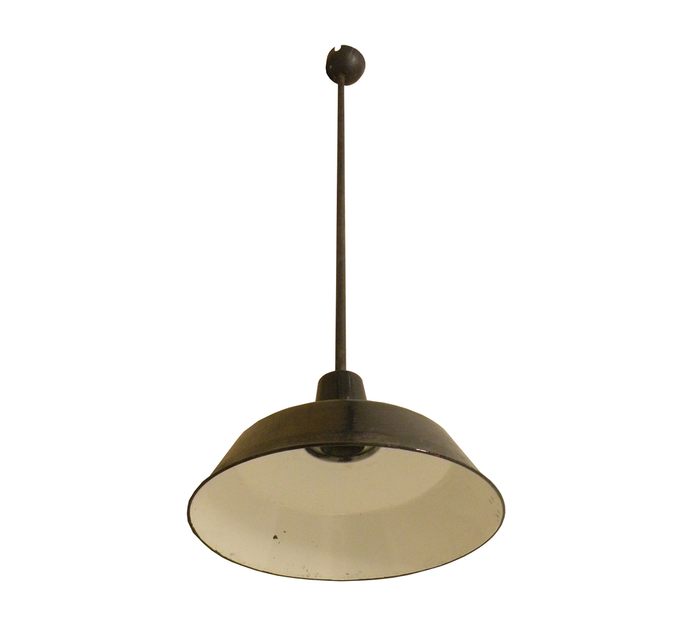 Pendelleuchte, schwarz, Metallschirm Emaillie, Innenseite weiß, Metallstab